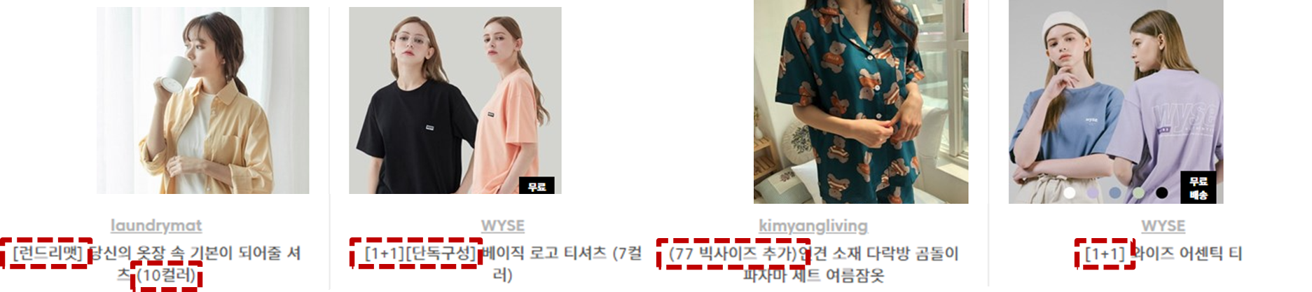 제목이 안 그래도 짧은데, 제목에 과적합을 야기할 수 있는 불필요한 단어들이 많이 포함되어 있어서 전처리가 필요했다. 특히 [무료배송], (1+1), ★특가할인★ 등과 같이 특정 문구[],{},()와 그 안에 들어있는 단어들을 제거해야했다.