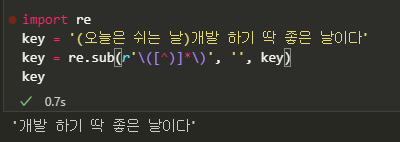 붉은 색 글씨 속에 있는 것들이 제거 됨을 알 수 있다.